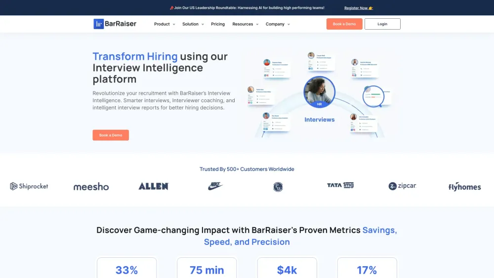 5 次免费面试 / AI 驱动的视频面试智能 / 公正的面试 / 自动反馈和记笔记 从每位面试官每月 75 美元起