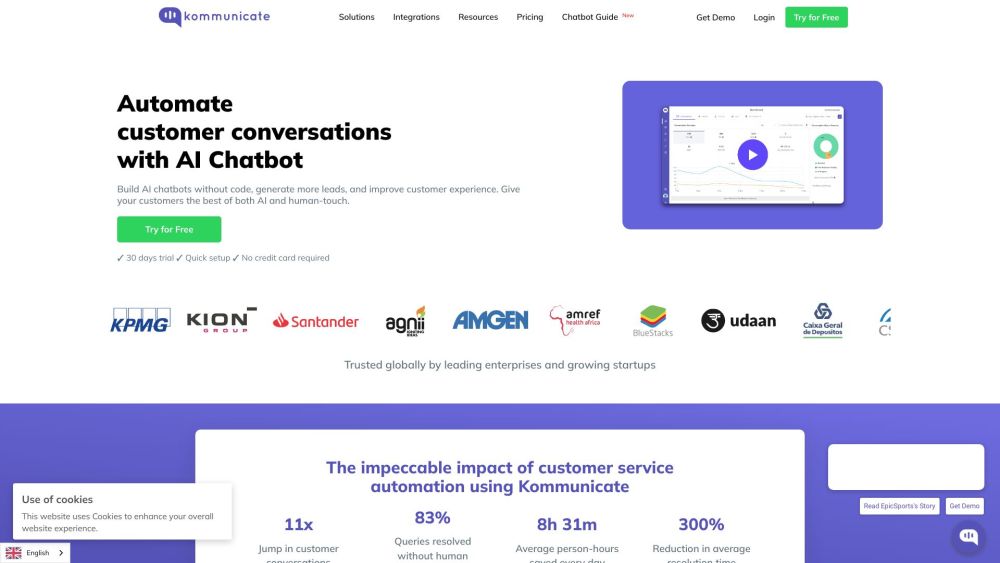 30天免费试用 / AI驱动的客服自动化 / 生成式AI聊天机器人 / 无需注册 每月从$83.33起(每月500次对话)