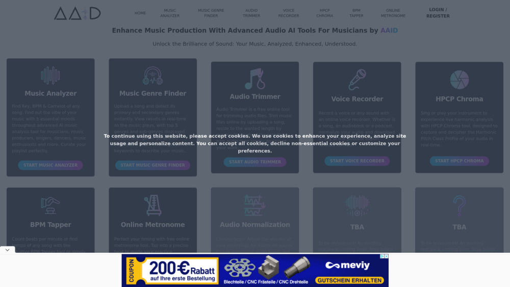 免费 / 音调、节拍和卡麦隆检测 / AI驱动的情绪分析 / 音乐风格查找器