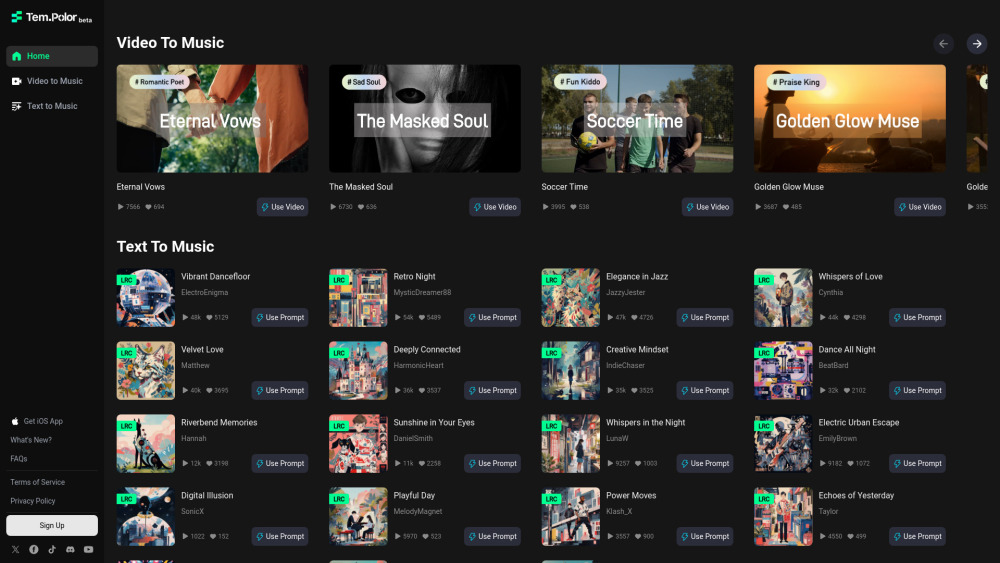 免费 / 从关键词/歌词中创建自定义歌曲,3次点击即可 / 在一分钟内作曲和制作 / 分享到社交媒体