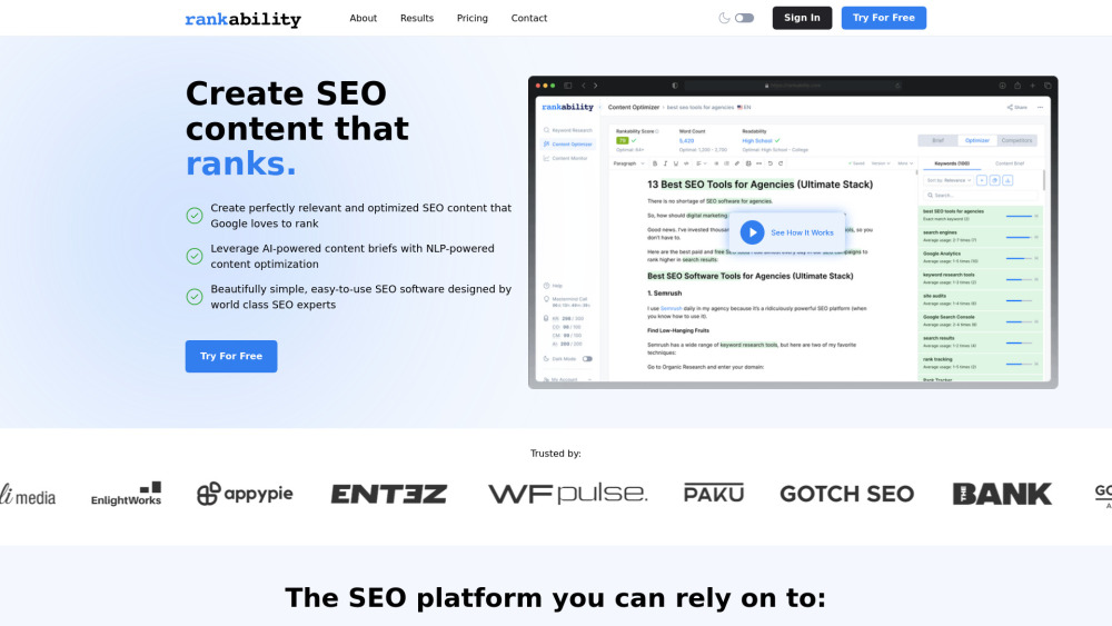 7天免费试用 / 谷歌内容优化 / 具有NLP和SERP分析的高级内容编辑器 / 生成式AI 起价$23/月