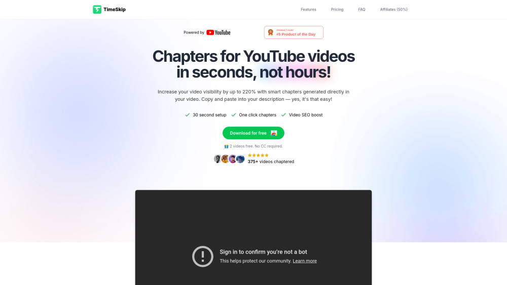 2个视频免费 / 即时创建章节/时间戳 / SEO优化的章节 / 无需CC 从$17起可用于30个视频