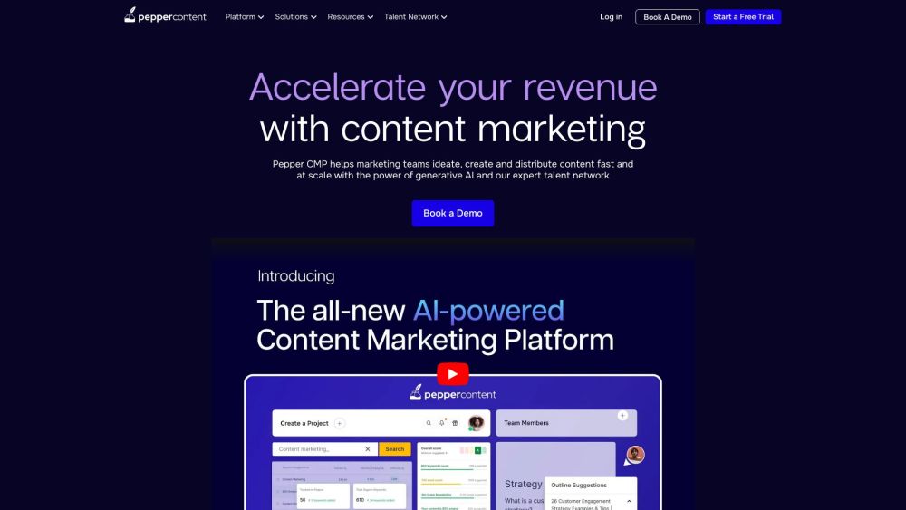 免费试用 / 基于人工智能的内容营销平台 / 专家主导的人才网络 / 推动有机增长和投资回报率