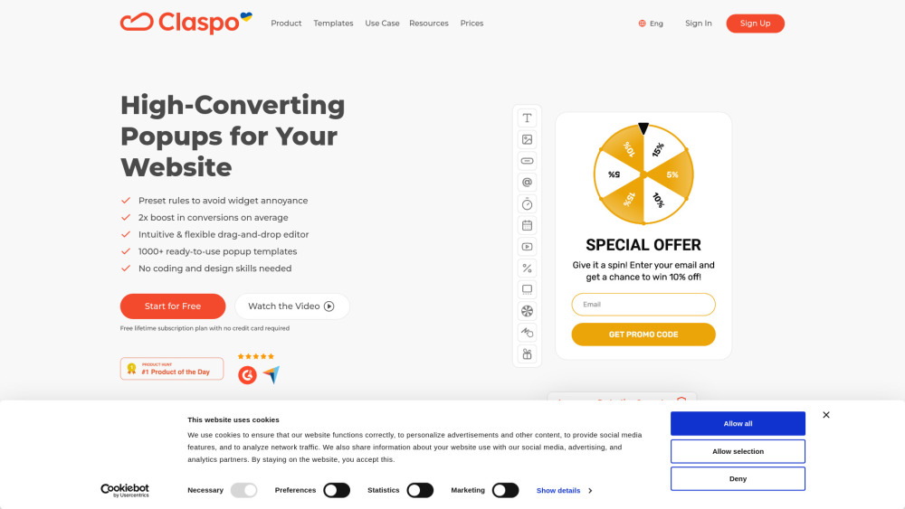 免费终身订阅,提供30,000个页面浏览和3个活动小工具 / 高转化弹出窗口 / 直观灵活的拖放编辑器