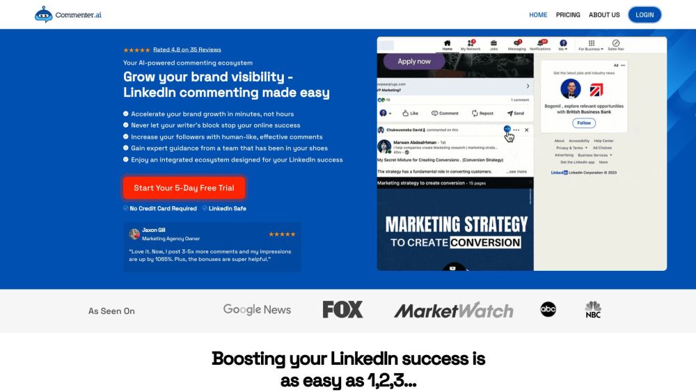 免费无限的AI辅助评论,3种自定义语气,监控10个潜在客户 / LinkedIn评论和内容生成AI / 潜在客户监控 / 无需信用卡 每月起价$10.32