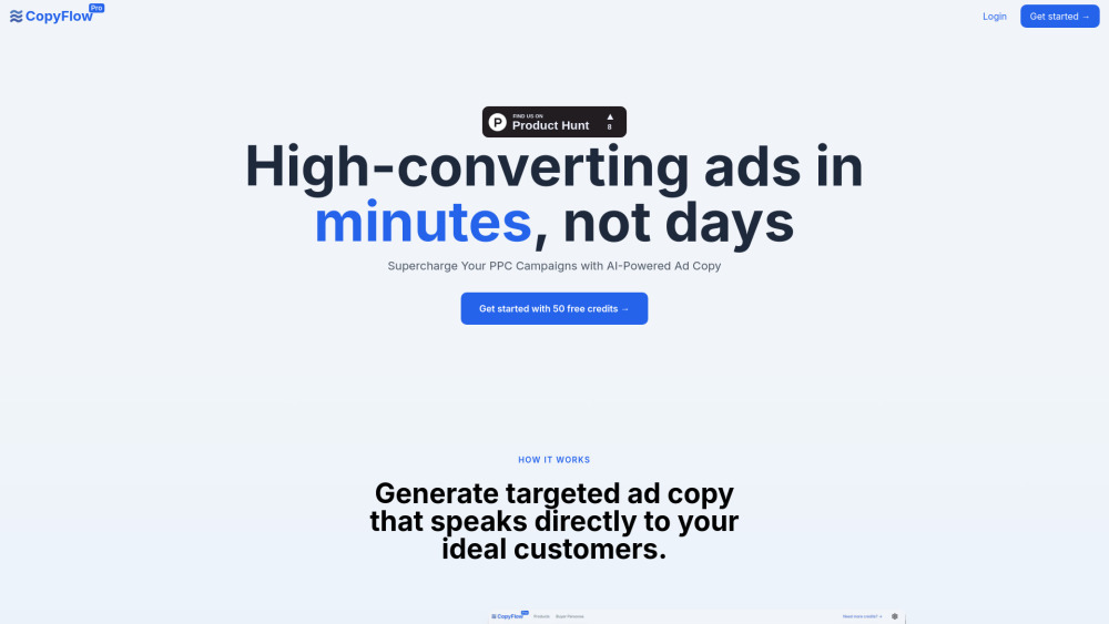 50个免费积分 / 生成针对性的PPC广告文案 / 创建详细的买家画像 起价$49/月