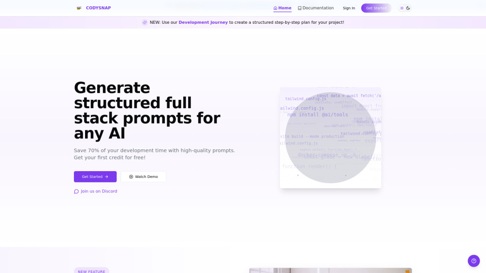 1个免费积分 / 生成结构化的AI提示 / 将设计转化为功能性的Web应用程序 / 节省70%的开发时间 从$10起,获取30个积分