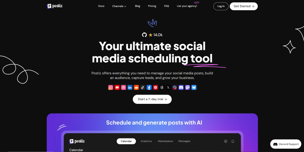 3天试用 / 向9个社交媒体平台调度帖子 / 生成短视频内容 从$16/月