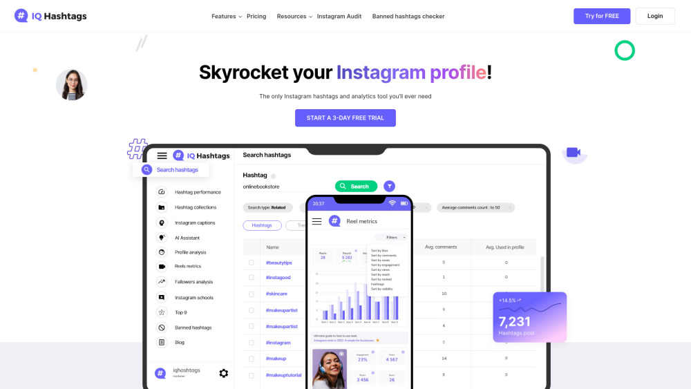 3天免费试用 / Instagram关键词和标签搜索 / AI助手 / 陰影禁令检查 从每月7美元起。