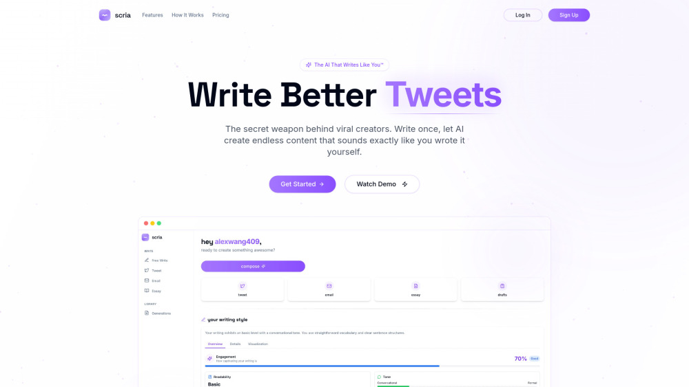 5个免费积分 / 生成引人入胜的推文 / 提高社交媒体参与度