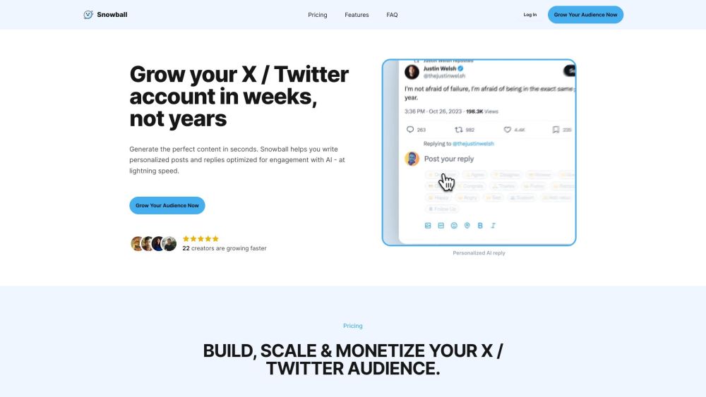 免费三天试用 / 自动化 X (Twitter) 内容创建 / AI 驱动的互动 价格从每月 $16.5 起