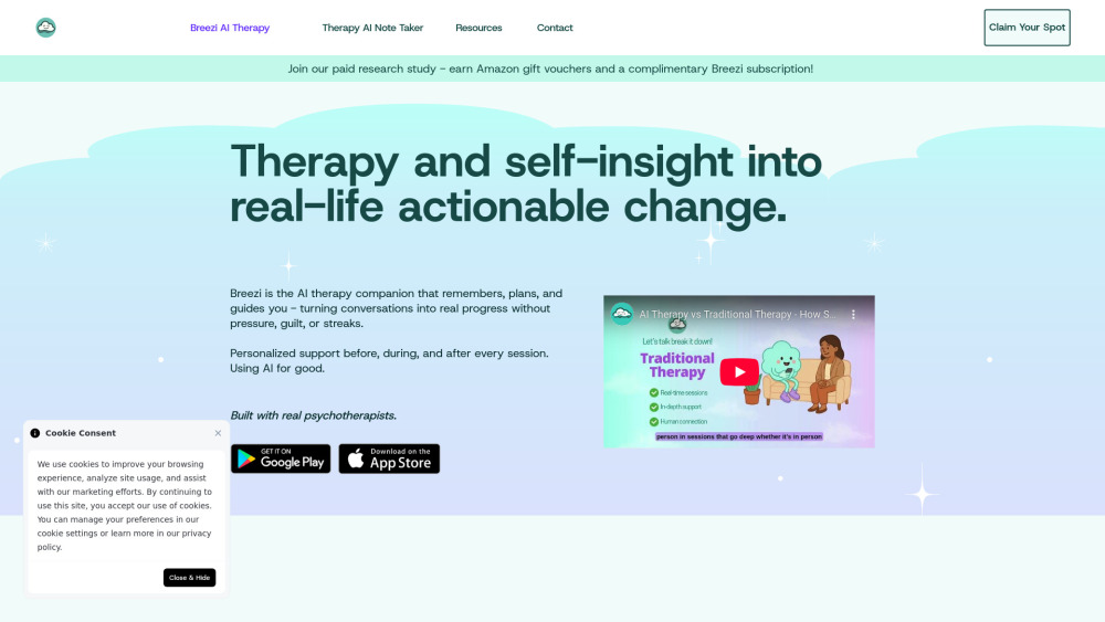 测试期间免费 / 专家支持的人工智能治疗 / 个性化的24/7心理健康伙伴