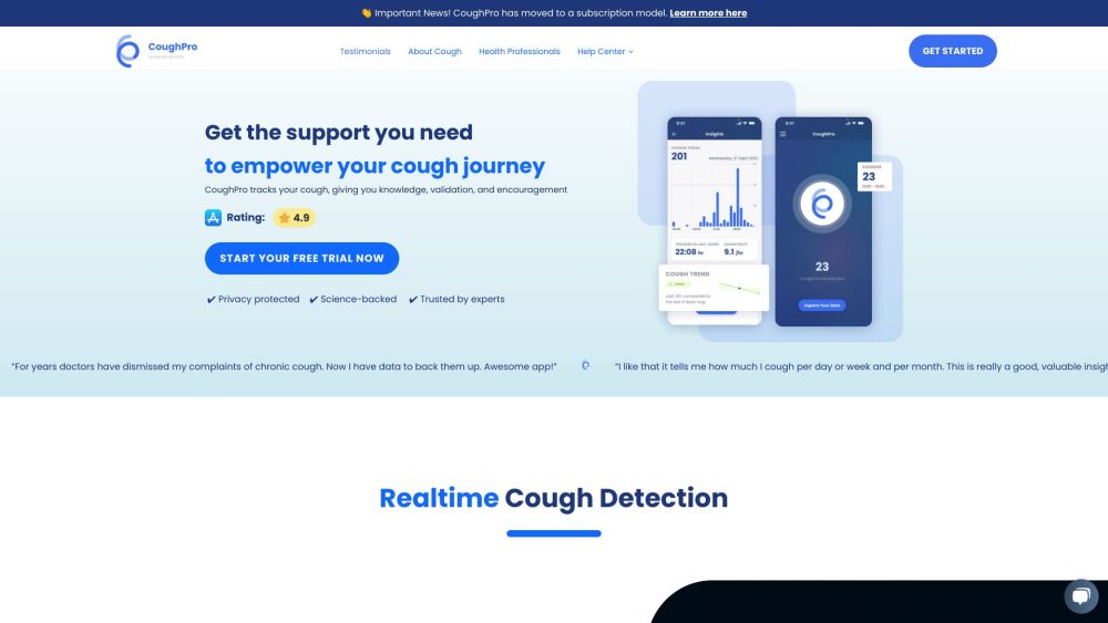 免费试用 / 人工智能驱动的咳嗽检测 / 在任何设备上实时跟踪咳嗽 / 咳嗽模式洞察