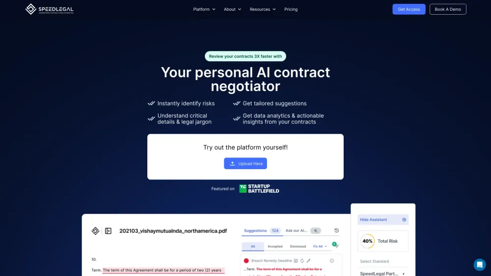 7天免费试用 / 草拟和审查合同快10倍 / 标记合同并捕捉风险