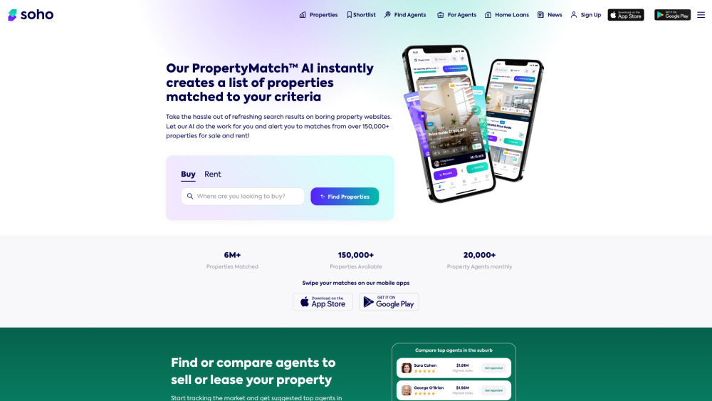 5个免费的每日提示 / AI驱动的房产匹配 / 搜索和滑动房产列表