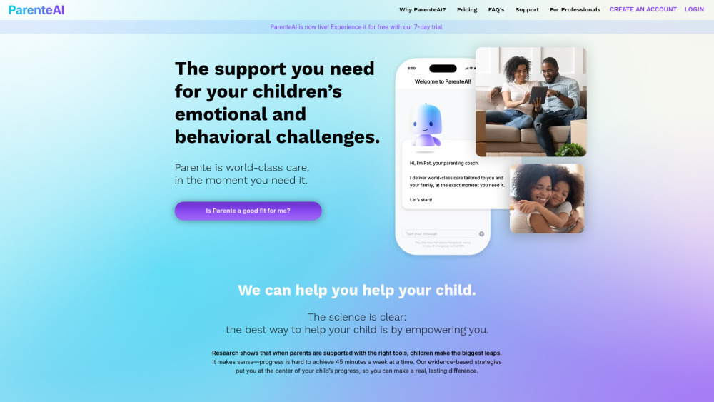10天免费试用 / 基于AI的育儿教练 / 24/7的证据基础育儿支持 每月$49起