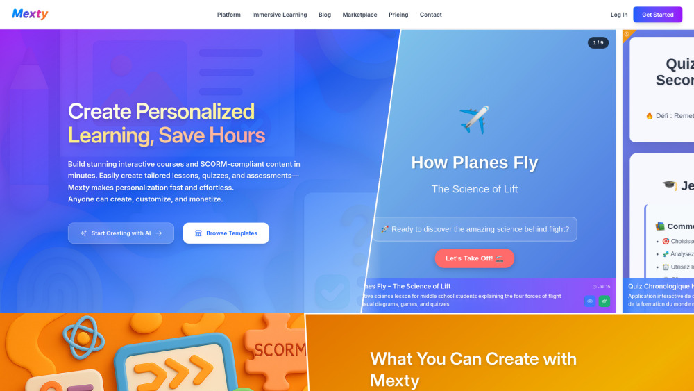 10个积分(一次性)/ AI驱动的SCORM兼容创作工具 / 创建互动课程和测验 每月从9欧元起