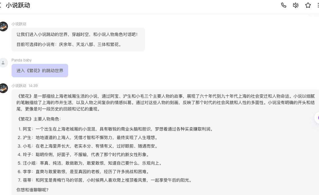 「小说跃动」是一个创新的交互式聊天 Bot,它将文学与技术巧妙地结合在一起,让用户能够与小说中的角色进行对话。通过这个 Bot,读者可以深入探索他们喜爱的小说,与小说人物进行互动,甚至从不同的视角探索剧情。这个 Bot 利用先进的 AI 技术,让小说角色栩栩如生,带来全新的互动体验。无论是深入探讨角色背后的动机,还是体验故事情节的新角度,「小说跃动」都能为读者打开一个充满想象力和互动乐趣的娱乐世界。。