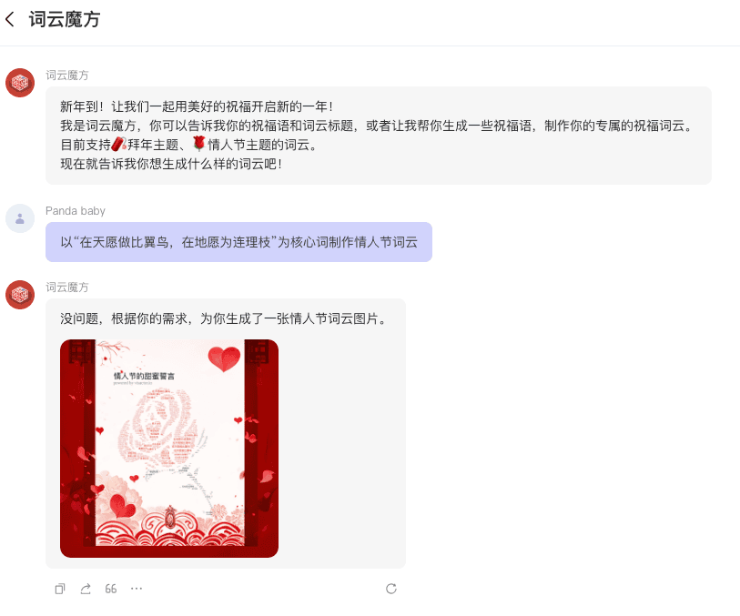 为你生成个人定制的词云,支持拜年、情人节等主题。