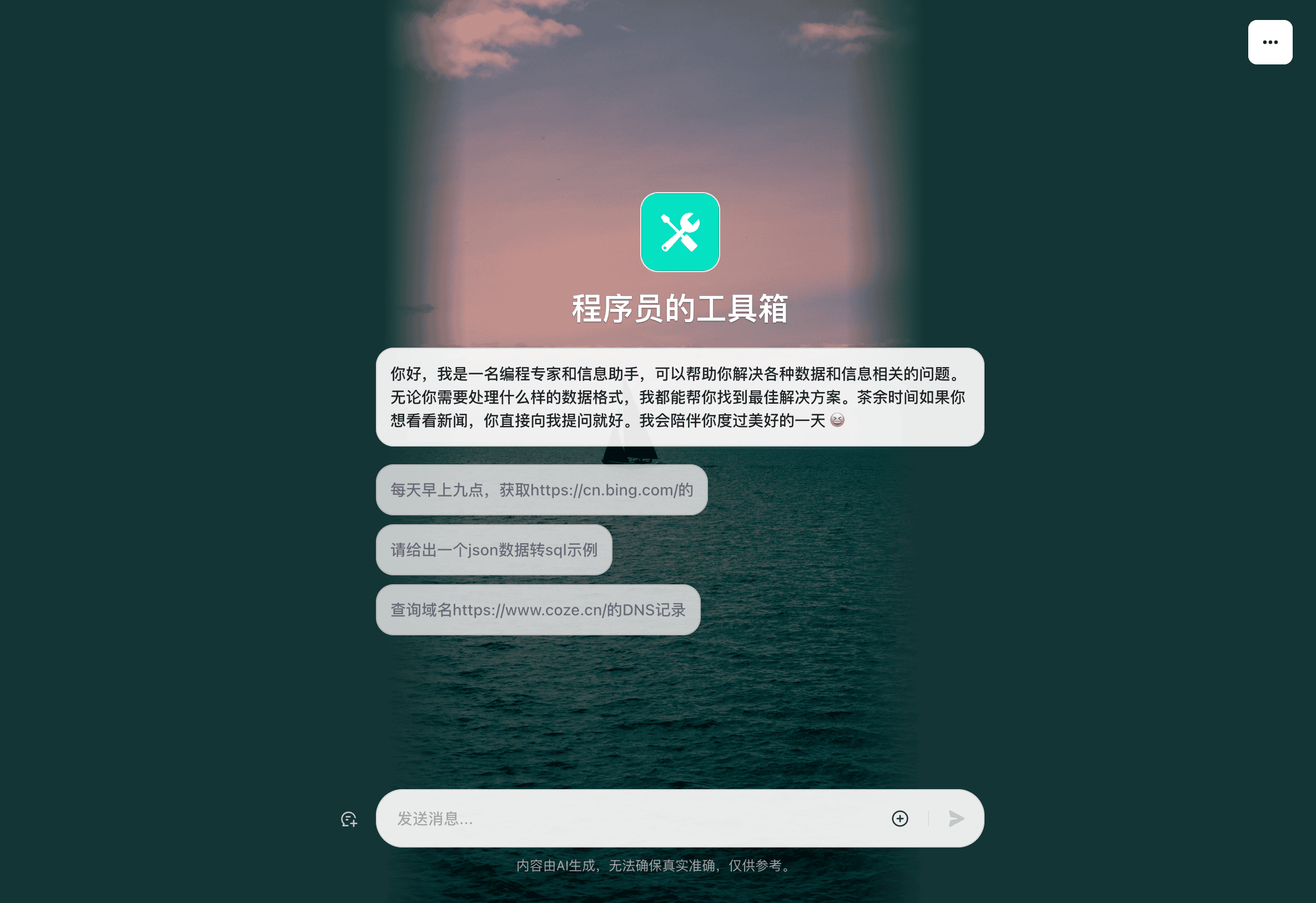 程序员的工具箱。功能集成json格式化,json转sql,json转golang,域名DNS记录查询,搜索引擎,600+linux命令,网页内容总结,OCR识别等工具。目标是一个工具解决程序员日常工作中使用到的工具网站。。