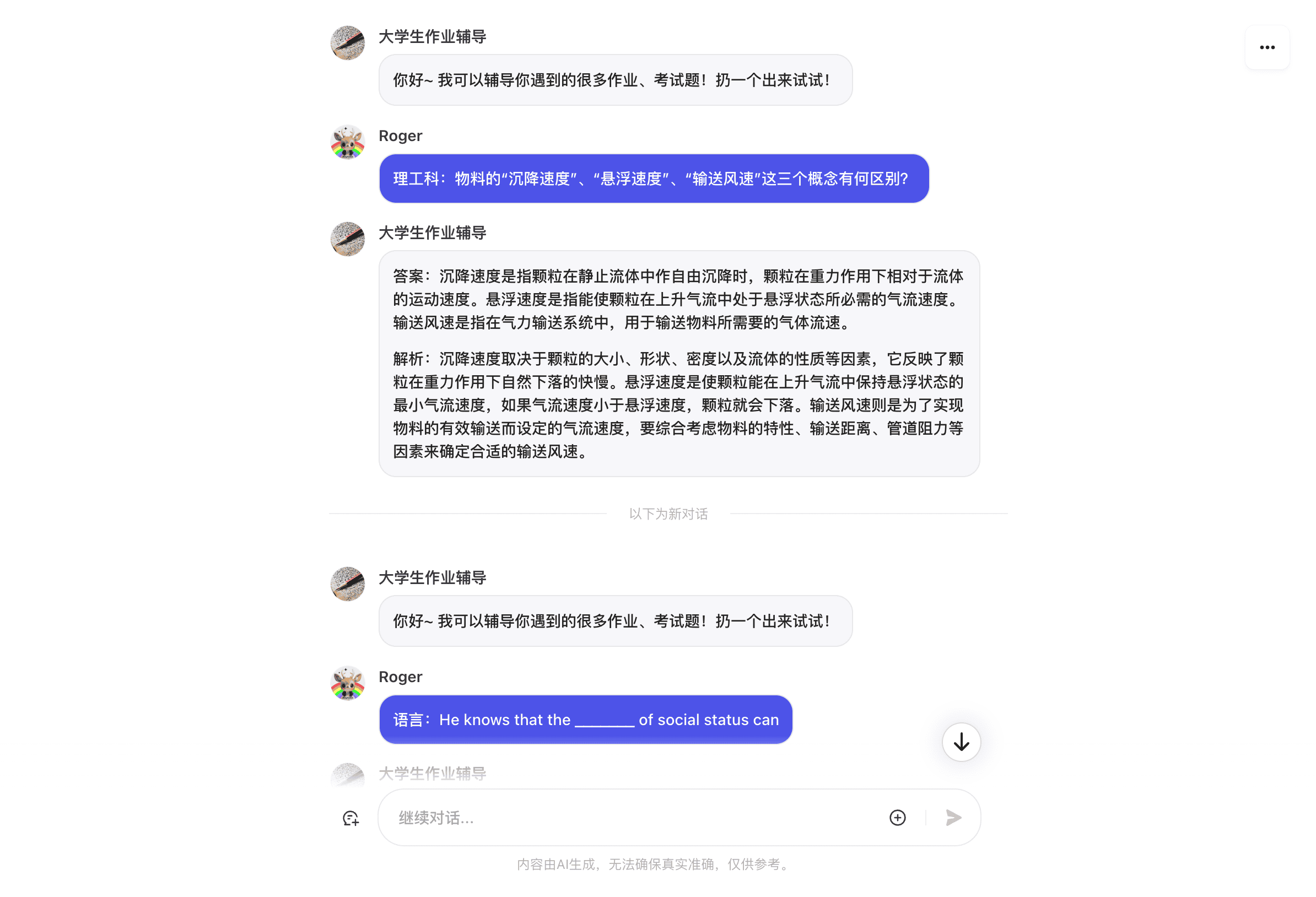 专业、快、准、广地辅导大学生各专业的、各类型的考试、作业题,深度问答,轻松学习!。