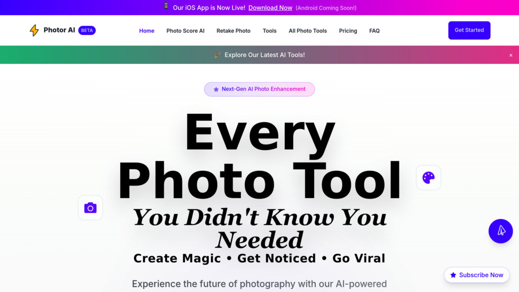 AI驱动的照片与视频增强平台,提供先进编辑、创意工具及流畅用户体验。。