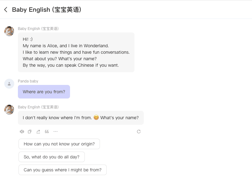 宝宝Alice陪你学英语(地道语音陪练)(支持联网获取知识)。