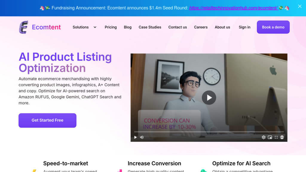 自动创建和优化电子商务产品列表的平台,提供为AI搜索引擎量身定制的动态视觉和文字内容。。