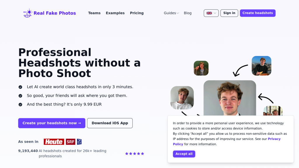 AI驱动平台,一小时内将用户照片生成数百张高质量、可定制的专业证件照。。