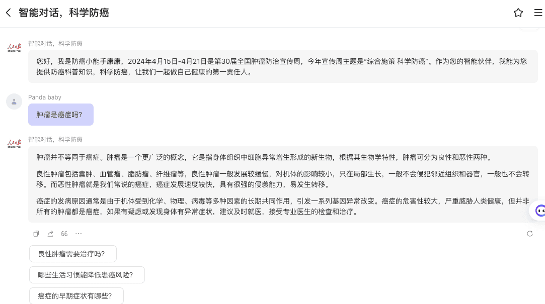 人民日报健康客户端AI赋能肿瘤防治行动。