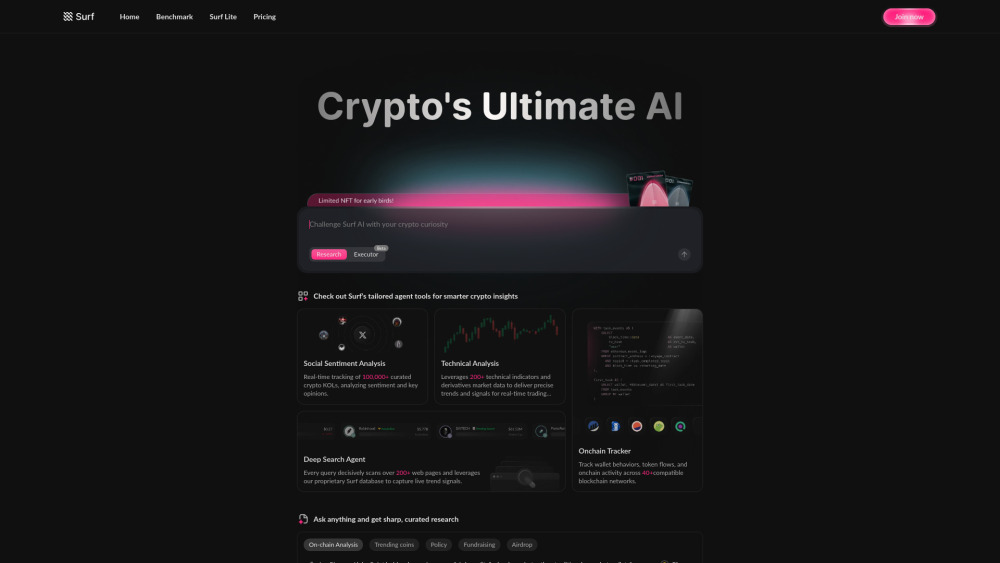 Surf,终极加密AI——机构级研究与执行一体化指挥中心。。