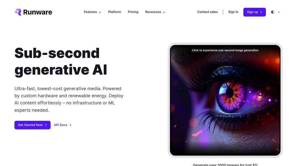 超快速图像生成平台,通过自定义硬件和优化的Stable Diffusion API提供亚秒级推理。。