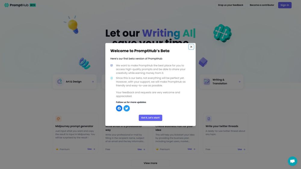 一款用于生成更好提示,提高 AI 内容质量的人工智能工具。。