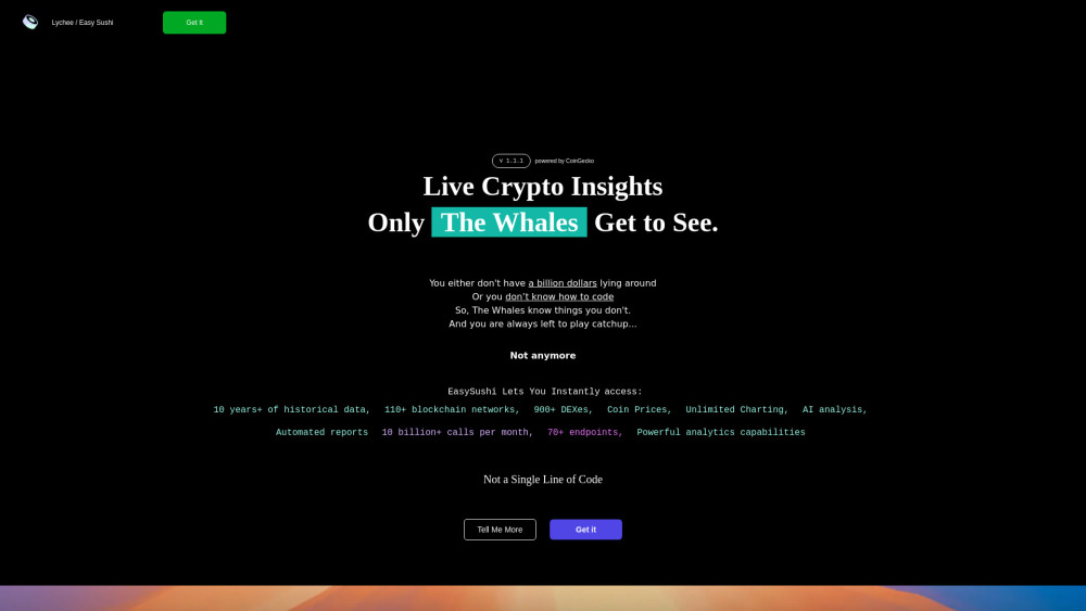 EasySushi提供无需编码的加密市场洞察,包括历史数据、图表和AI分析。。