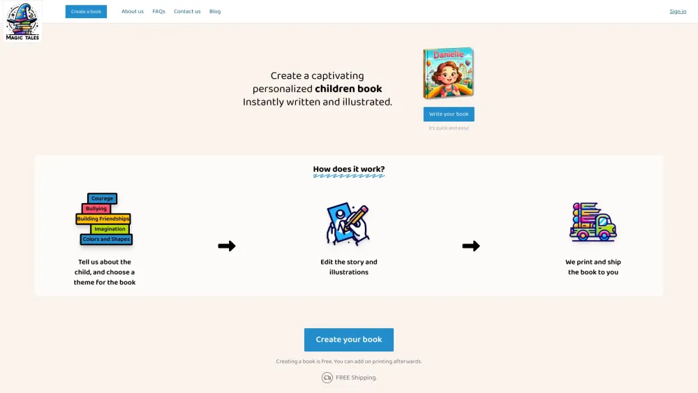 个性化、定制插图的儿童书籍,可以在几分钟内创建并提供免费配送。。