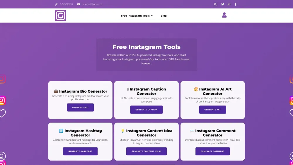 免费的 AI 驱动 Instagram 营销工具,助力提升您的影响力。。