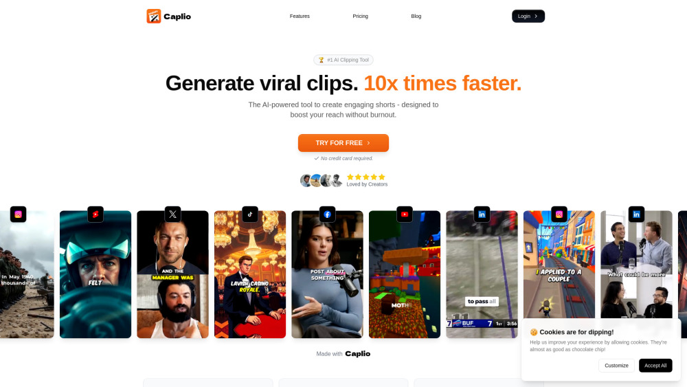 AI工具用于创建病毒视频剪辑,具有AI短视频和字幕等功能。。
