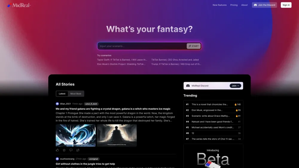 「塑造您自己的冒险,享受动态AI驱动的叙事。」。