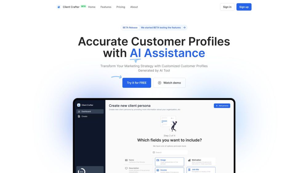 一款利用AI为目标客户创建视觉和描述的工具。。