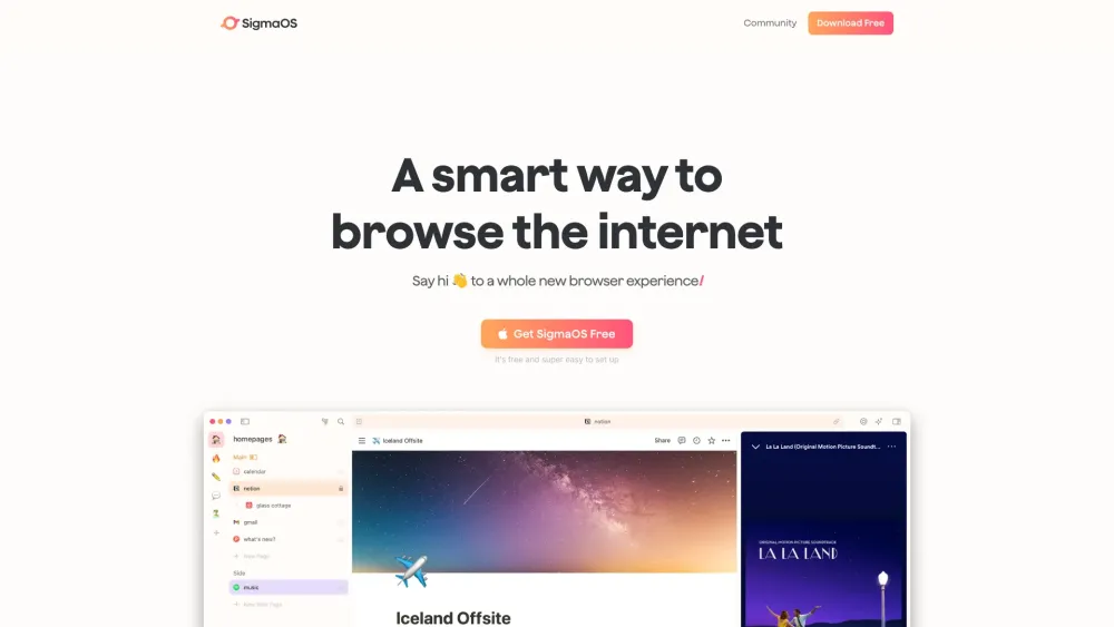 SigmaOS是一个以生产力为中心的浏览器,具有AI工具和组织功能。。