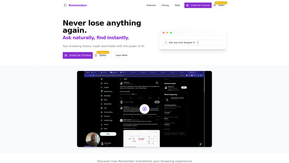 基于人工智能的浏览器扩展,实现自然语言可搜索的浏览历史。。