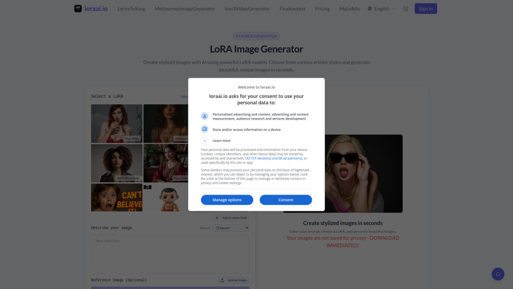 高级 LoRA AI 图像生成器,用于定制模型和惊艳视觉效果。。