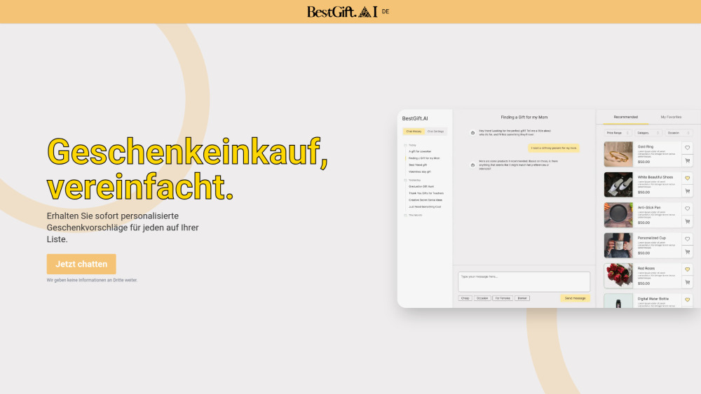 基于AI的平台,以个性化礼物推荐和无压力的赠礼体验为特色。。