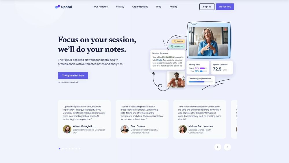 面向心理健康专业人士的AI平台,自动化记录并提供会话分析。。