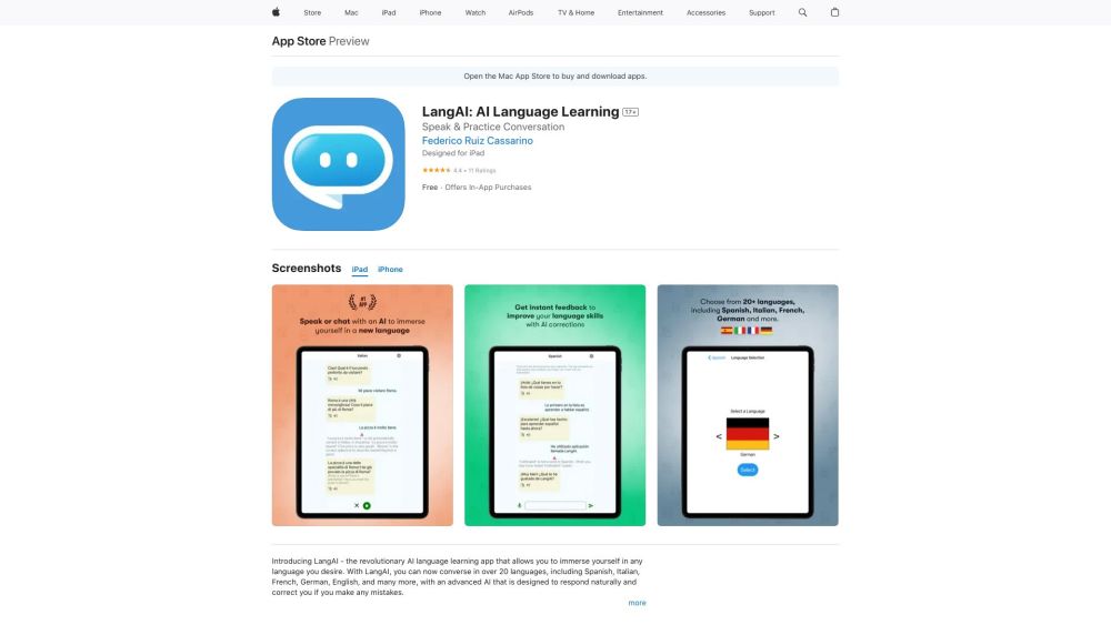 人工智能语言学习应用,提供实时纠正和个性化对话。。