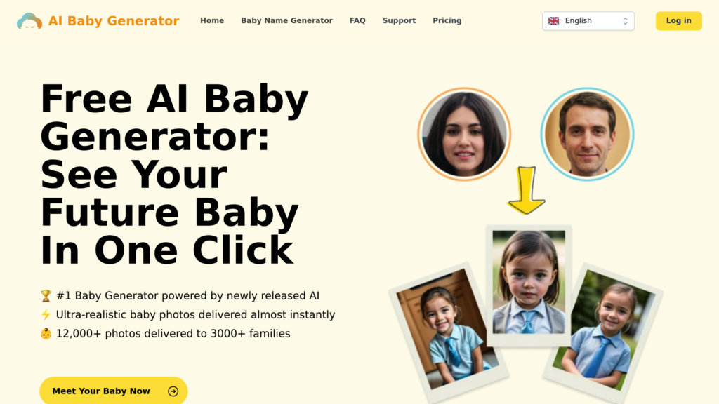 AI驱动的平台,通过分析父母照片中的面部特征,生成逼真的未来宝宝图像。。
