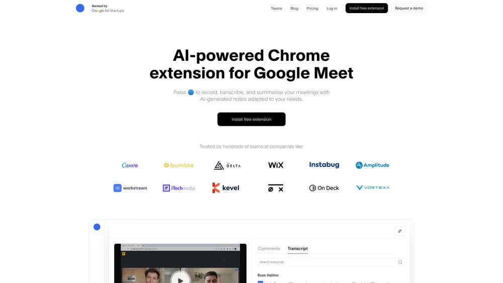 用于Google Meet、Zoom和MS Teams的AI笔记记录、转录和会议总结工具。。