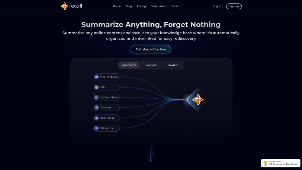 基于 AI 的工具,用于总结、组织和回忆在线内容,以增强记忆和知识。。