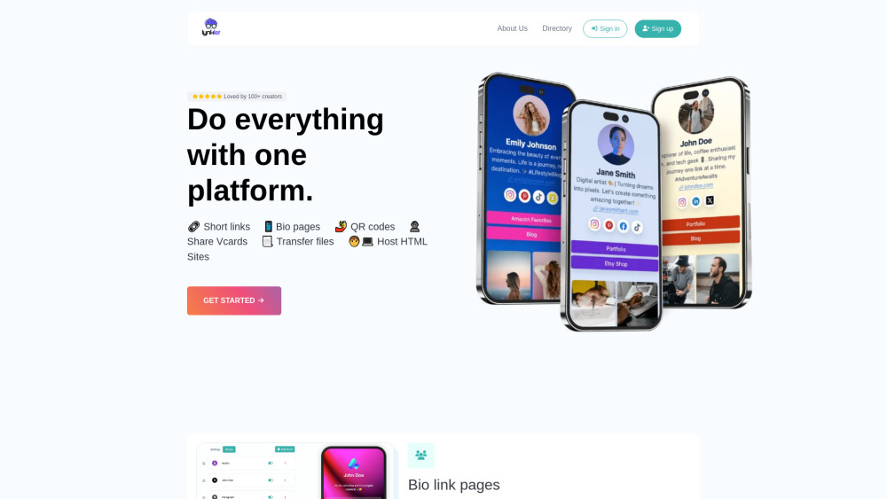 综合平台,提供生物链接、URL缩短、二维码和AI工具。。